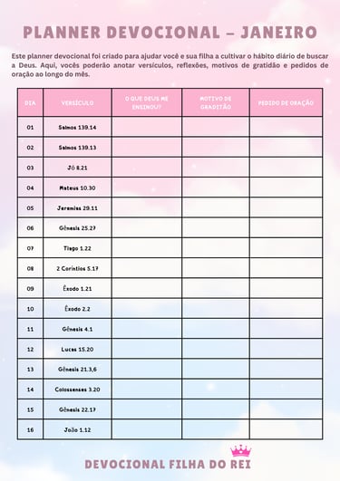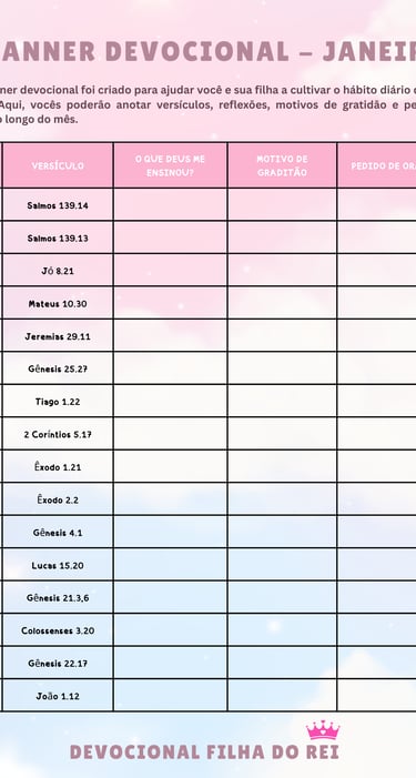 Planejamento Devocional da Filha do Rei